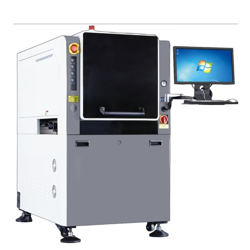 High-precision laser marking system designed for SMT production lines, featuring coaxial vision correction for accurate PCB marking applications.